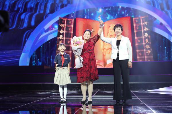 當(dāng)李芳老師的愛(ài)人與女兒走上舞臺(tái)時(shí),臺(tái)下爆發(fā)出熱烈的掌聲;被李芳老師救下的四名學(xué)生為他們獻(xiàn)上鮮花,并將獎(jiǎng)杯放在花團(tuán)錦簇的領(lǐng)獎(jiǎng)臺(tái)上,舞臺(tái)上,孩子們朝著空空的領(lǐng)獎(jiǎng)臺(tái)深深地鞠躬,舞臺(tái)下,觀眾們的眼淚在眼眶中轉(zhuǎn)了又轉(zhuǎn)。
